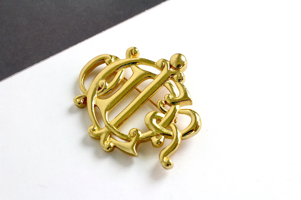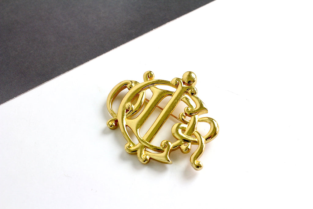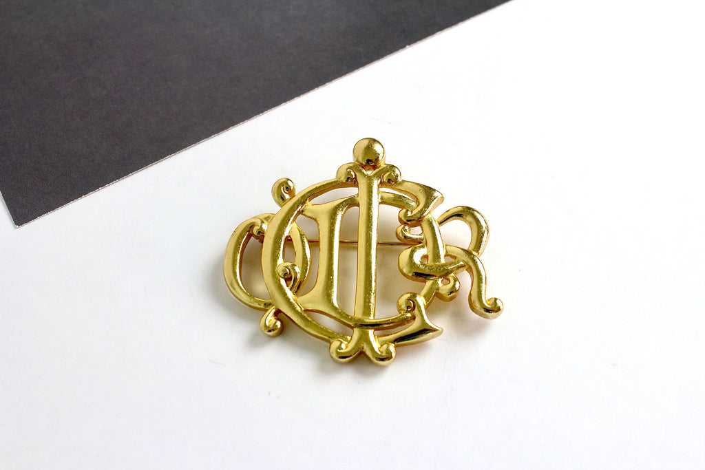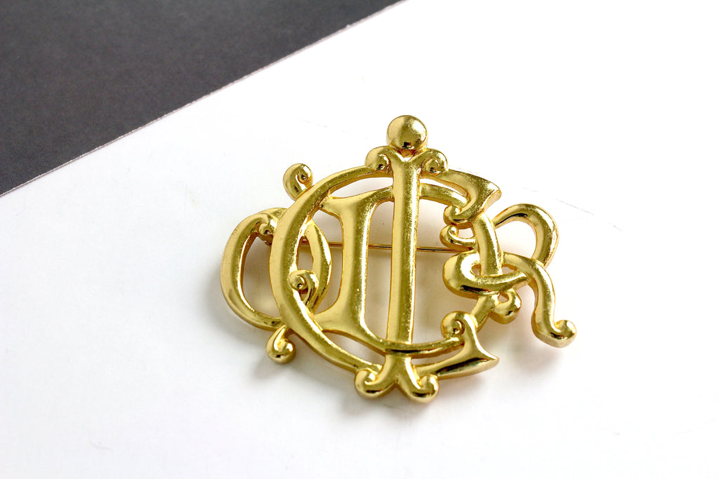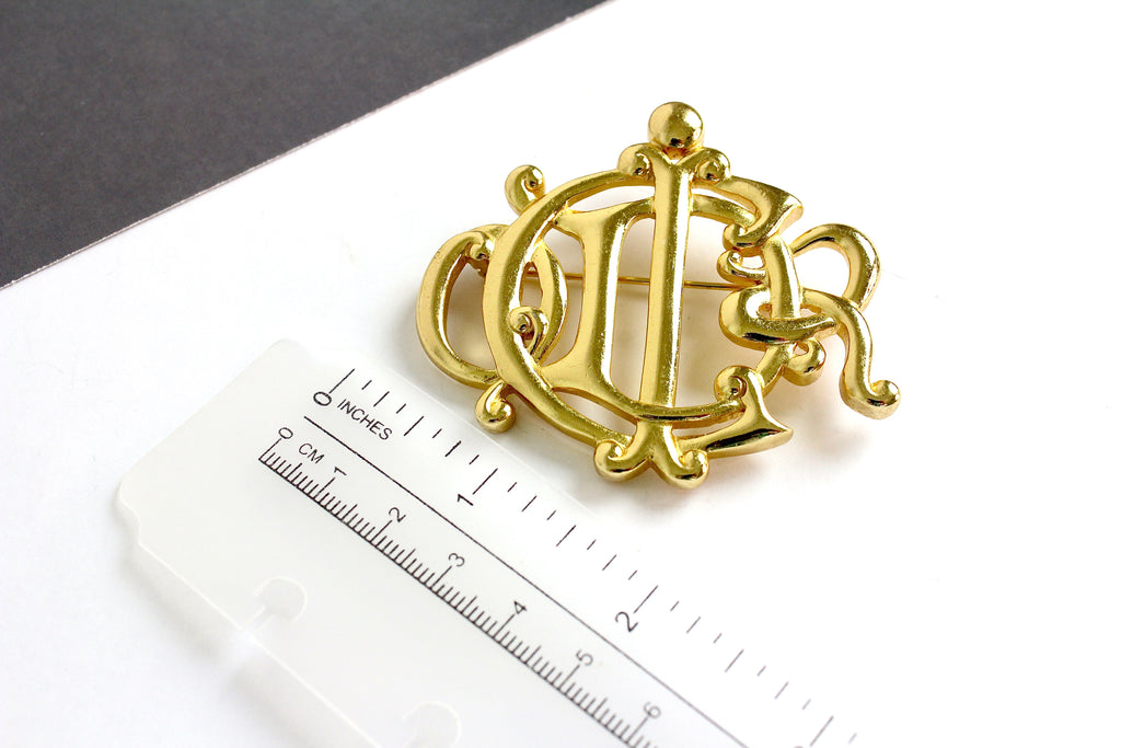 Vintage Dior logo Gold-tone brooch made in Germany #2868